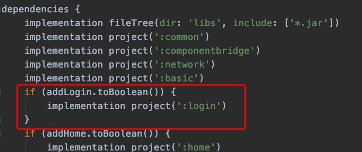 然后在login中的build.gradle通过addLogin变量来控制构建方式