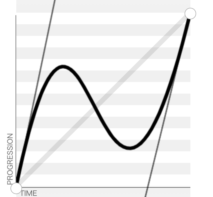 中间速度有一个反向过程,所以我们的动画效果就是在中间时刻有个往返效果